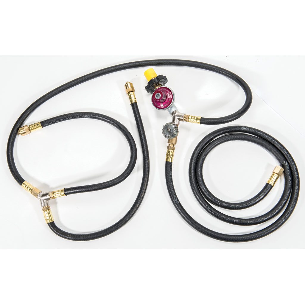 All hoses are fit for a specific item in our line of camping gear. They vary in length from the point of attachment to the propane tank. If you are needing a specific length of hose, feel free to give us a call and we will be happy to accommodate that for you. The duo-hose is built to run both a stove and a blaster from the same propane tank all at once.